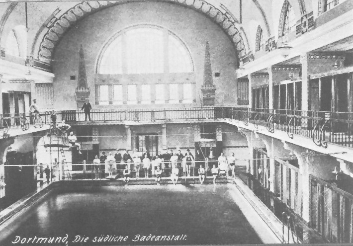 DLRG Bezirk Dortmund führt mit finanzieller Unterstützung der Stadt Dortmund Übungsstunden im Südbad durch: Einführung des "Dortmunder Systems", d.h. "Fließbandausbildung" in durchlössigem Gruppenunterricht. Dabei - erstmals in der DLRG - neben dem Rettungschwimmen auch Anfänger-Schwimmunterricht!
