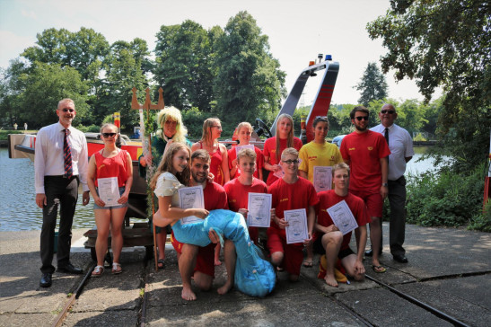 Wir gratulieren den sechs neuen Bootsführerinnen und Bootsführern (alphabetisch sortiert) Romina Hustermann, Monika Schunke, Ann-Kathrin Witte, Marvin Krämer, Nils Lodwig und Andreas Meyer ganz herzlich zum Erwerb dieser Qualifikation. Neben dem Nachweis von mindestens 2 Jahren aktivem Bootsdienst mussten sie nach einem Vorbereitungslehrgang noch die entsprechende schriftliche und praktische Prüfung bestehen. Lehrgangsleiter Karl-Heinz Betzer konnte mittlerweile die ausgestellten Bootsführerscheine überreichen. ... Mehr erfahren