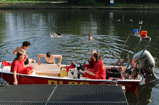 Auch die zweite JET-Wache des DLRG-Bezirks Dortmund vom 28. bis 30.06. war wieder ein Erfolg. 10 JETies aus 3 Ortsgruppen und 10 Ausbilderinnen und Ausbilder hatten sich dafür am Hengsteysee eingefunden. Los ging es am Freitagabend mit einem gemeinschaftlichen Grillen und anschließendem Stockbrotbacken am Feuertopf zum Kennenlernen. Am Samstag standen dann unterschiedliche Übungseinheiten der Fachausbildung Wasserrettung auf dem Programm: Bootsmannschaft und Revierkunde An-Bord-holen einer verunfallten Person mittels Spineboard Schwimmen in fließenden Gewässern Da aufgrund des EM-Fußballspiels in Dortmund einige der Ausbilder zur öffentlichen Gefahrenabwehr früh die Wache verlassen mussten, wurde für den Samstagnachmittag ein gemeinschaftlicher Besuch des Westfalenbade ... Mehr erfahren