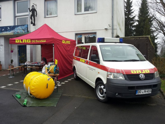 Am vergangenen Samstag präsentierten sich die Einsatztaucher des Bezirks auf einem Tauchertrödelmarkt bei der Firma Tauchsport Schneider. Bei wechselhaftem Wetter konnten sich Interessenten über die Ausbildung zum Einsatztaucher die Arbeit der DLRG informieren. Auf dem Stand der Taucher gab es die Möglichkeit viele Ausrüstungsgegenstände zu besichtigen, die für das Sporttauchen eher unüblich sind. Dazu gehörte die Vollmaske, der Notfallkoffer mit Sauerstoff und einem Wenollsystem sowie der große 500 kg Hebesack, der erst im letzen Jahr angeschafft worden ist. Die Ortsgruppe Dorstfeld präsentierte sich ebenfalls mit einem Infostand und informierte über die Schwimmausbildung in der DLRG. ... Mehr erfahren