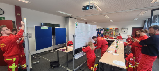 Der diesmalige Dienstabend beschäftigte sich mit den Tätigkeiten und Möglichkeiten in einem Wasserrettungszug. Um mögliche Szenarien Praxisnah durchspielen zu können, hatten wir einen ganzen Wasserrettungszug in der Einsatzzentrale in Dortmund zu Gast. Da ein ganzer WRZ allerdings unsere Parkplatzkapazitäten sprengen würde, haben wir die Fahrzeuge verkleinert. Geschrumpft ging es also los: der WRZ, welcher auf den Funkrufnamen WRZ Playmo hörte, rollte in den Bereitstellungsraum und übernahm im „Schulungsraum Hörde“ die Übungslage. Dieses Planspiel wird im LV Westfalen bereits zur Aus- und Fortbildung von Trupp- und Gruppenführer:innen genutzt. Auch bei uns konnten unsere Helfer:innen die Möglichkeiten, die Rollenverteilung und Wirkungsmöglichkeiten eines WRZ praktisch erfahren und ... Mehr erfahren
