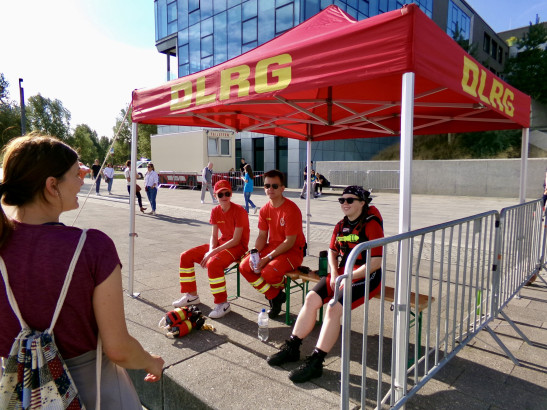 Am Wochenende 04.-05.05.2024 fand zum 7. Mal das Stadtfest DortBunt in der Dortmunder City statt. Beim Familientag am Sonntag (05.05.) präsentierte sich neben vielen Dortmunder Sportvereinen auch die „Blaulichtfamilie“ der breiten Öffentlichkeit. Vertreten waren über 120 Einsatzkräfte von ASB, DRK, JUH, MHD, THW, Feuerwehr, Bundeswehr, Bundes- und Landespolizei und etwa 20 Einsatzkräfte der DLRG Dortmund. Auch ein paar JETies (Jugend Einsatz Team) waren den ganzen Tag bei der DLRG mit dabei und brachten sich entsprechend ein. Neben der Präsentation des Einsatzmaterials und der Information interessierter Bürger*innen stand aber auch wieder die Vernetzung der Hilfsorganisationen im Fokus. Im Zuge der Vorbereitung auf die Fußball-Europameisterschaft 2024, bei der auch Spiele in Dortmund au ... Mehr erfahren