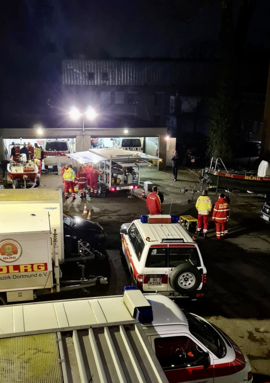Am 05.11. wurde der Führungstrupp der DLRG Münster und seine unterstellten Einheiten zu einer angenommenen Explosion in einem Kiesabbauwerk in Rheinberg alarmiert. An dieser Nachtübung durfte auch der Dortmunder Logistiktrupp teilnehmen. Zusammen mit sechs Rettungsbooten der DLRG, besetzt mit Einheiten der Stömungsrettung, einer DLRG Drohneneinheit sowie mehreren Fachgruppen des THW mussten dabei mehrere verletzte Personen gesucht und teilweise mit seiltechnischen Mitteln gerettet werden. Dem Logistiktrupp fiel in diesem Szenario der Aufbau und Betrieb einer Patientenablage zur Erstversorgung der Verunglückten außerhalb des Schadensgebietes zu. Dazu wurde ein Zelt aufgebaut, ausgeleuchtet und beheizt. In enger Zusammenarbeit mit dem THW konnte weiterhin eine Patientenübergabestelle erku ... Mehr erfahren