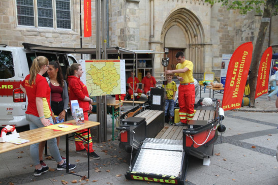 Am 05.09.2015 fand in der Innenstadt der Dortmunder Blaulichttag statt. Die Dortmunder DLRG nahm ebenfalls an der Veranstaltung teil und stellte Motorrettungsboote und andere Fahrzeuge aus. Insbesondere das Hochwasserrettungsboot DO-5 stieß auf reges Interesse bei den kleinsten Besuchern. Über die Ausstellung der Rettungsbootes "DORTMUND", des Einsatzleitwagens und des Taucheranhängers kam man auch mit vielen erwachsenen Besuchern sowie Kameradinnen und Kameraden der anderen Organisationen ins Gespräch. Leider kamen aufgrund des durchwachsenen Wetters weniger Besucher als erhofft. Dennoch war der Stand immer gut besucht und die Veranstaltung war aus unserer Sicht ein Erfolg. ... Mehr erfahren