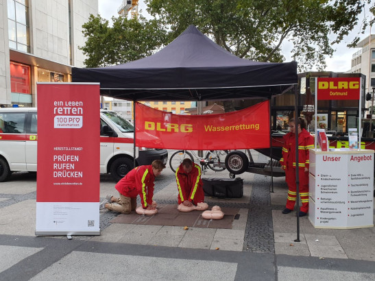 Das Jugendeinsatzteam der DLRG Dortmund und die Jugendfeuerwehr des Löschzugs Eving haben heute im Rahmen der Woche der Wiederbelebung in einer gemeinsamen Aktion den Besucherinnen und Besuchern des Wochenmarkts das Thema Laienreanimation näher gebracht. Ziel war es in erster Linie zu zeigen, dass auch Jüngere helfen können. Gefreut haben wir uns über den Besuch der ärztlichen Leiterin des Rettungsdienstes Fr. Dr. Schaller, die sich vor Ort vom Können der Kids überzeugen konnte. Während der Veranstaltung gab es für Kinder und Jugendliche auch die Gelegenheit ein Löschfahrzeug der Feuerwehr und ein Hochwasserboot der DLRG zu erkunden und sich über die Jugendarbeit der Organisationen zu informieren. Alle Akteure sind sich einig dass die Aktion im kommenden Jahr wiederholt werden soll. ... Mehr erfahren
