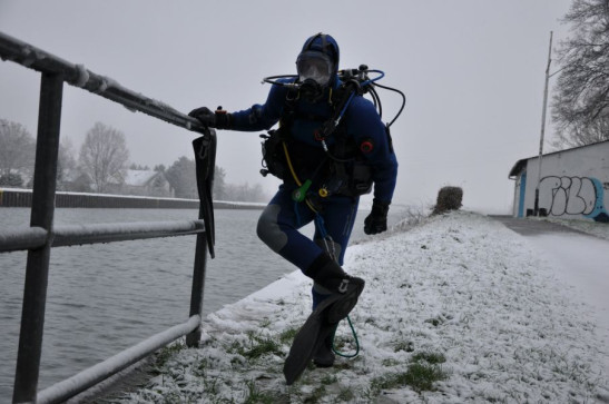 Der erste Schnee in Dortmund bot eine ganz besondere Kulisse für die Einsatztaucher der DLRG Dortmund. Bei Minusgraden und starkem Schneefall übte der Tauchtrupp im Dortmund Ems Kanal für den Ernstfall. Das eiskalte Wasser stellt dabei eine besondere Herausforderung dar. So kann die geringe Temperatur trotz passender Kälteschutzausrüstung nach einer Zeit zu Unterkühlung führen. Um das zu verhindern wurde überwiegend mit Trockentauchanzügen und Vollgesichtsmasken geübt. Während der Übungen konnten sich die Taucheinsatzführer und Signalmänner, die die Taucher von Land aus unterstützten mit alkoholfreiem Punsch aufwärmen. Alle beteiligten Taucher hatten die Möglichkeit bei absolut widrigen Wetterverh&au ... Mehr erfahren
