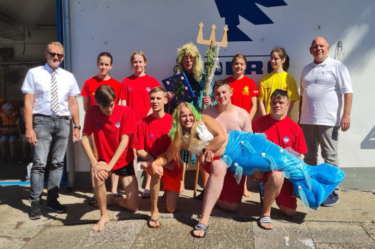 Es eine gute Tradition im DLRG Bezirk Dortmund, dass Neptun neue Rettungsschwimmer in ihrer ersten Saison in sein Reich aufnimmt. So kam auch in diesem Jahr Neptun begleitet von seiner Nixe Lorena an der DLRG Wasserrettungsstation am Hengsteysee vorbei, um Laura, Leonie und Felix van Rissenbeck, Julia Rose, Fabian Klimkeit, Finn-Lion Wilschewski und Lukas Paulmann mit mahnenden Worten, einem kräftigen Trunk und einem kräftigen Guss Ruhrwasser in den Kreis der Rettungsschwimmer aufzunehmen. Als Andenken an diesen Tag und Werkzeug für künftige Aufgaben erhielt jeder der Täuflinge anschließend aus der Hand von DLRG Bezirksleiter Stefan Raetsch noch ein Bootsmesser überreicht. ... Mehr erfahren