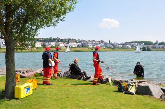 Ende Juli haben zahlreiche Einsatztaucher aus Dortmund mit Unterstützung aus Bochum und Münster an der Rettungswache am Hengsteysee an vier Tauchstellen über 50 Ausbildungs- und Übungstauchgänge durchgeführt. Neben Rettungsübungen und Suchmethoden lag der Fokus im Arbeiten mit Rohren und Flanschen in einer Tiefe von ca. 5m und dem Führen paralleler Tauchstellen. Einige angehende Einsatztaucher, die an dem Wochenende teilgenommen haben, werden ihre Ausbildung im kommenden Monat abschließen, um anschließend in der öffentlichen Gefahrenabwehr und dem Katastrophenschutz eingesetzt zu werden. ... Mehr erfahren