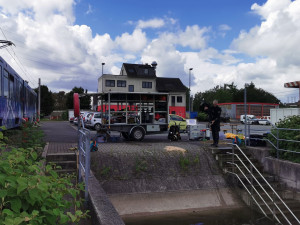 Nach einer kurzen Begrüßung und Sicherheitseinweisung, ging es um 10 Uhr ins Wasser. In der Tauchgrube wurden verschiedene Anschlagspunkte getestet und die Verwendung von Hebesäcken geübt. Ebenfalls durften sich die Taucher den Gerätewagen Wasserrettung (GW-W) der Feuerwehr anschauen.